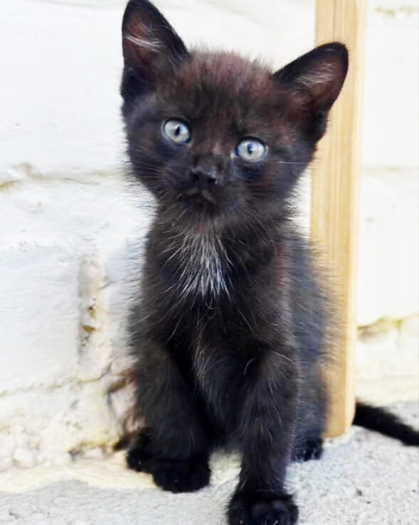 Мы нашли ее во дворе дома, скорее всего их подбросили. Забрали к себе на передержку. Отвезли в клинику, обработали, она здорова, возраст примерно 5 недель. Чёрно-белую девочку уже забрали, черненькая ждет свою семью!